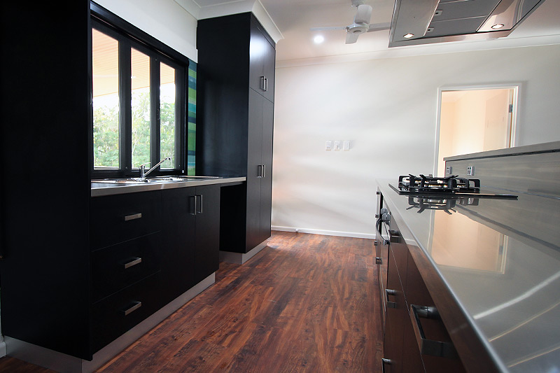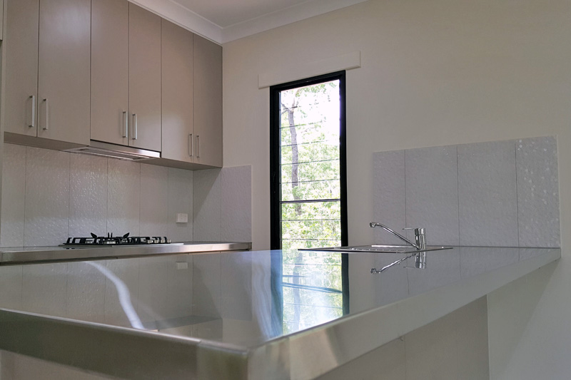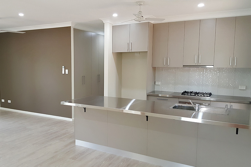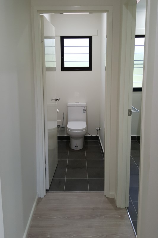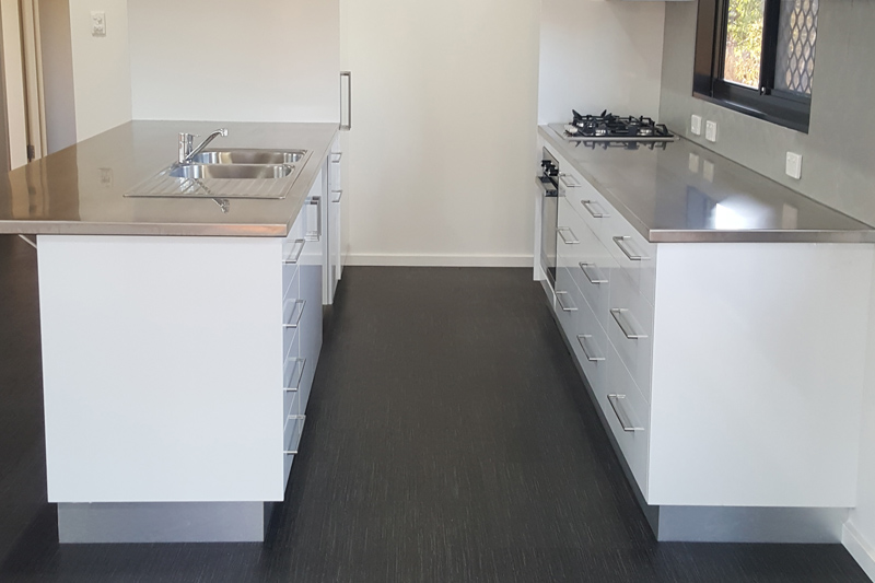 Looselay flooring, Tiled wet areas, Separate toilet, Stainless steel kitchen benches