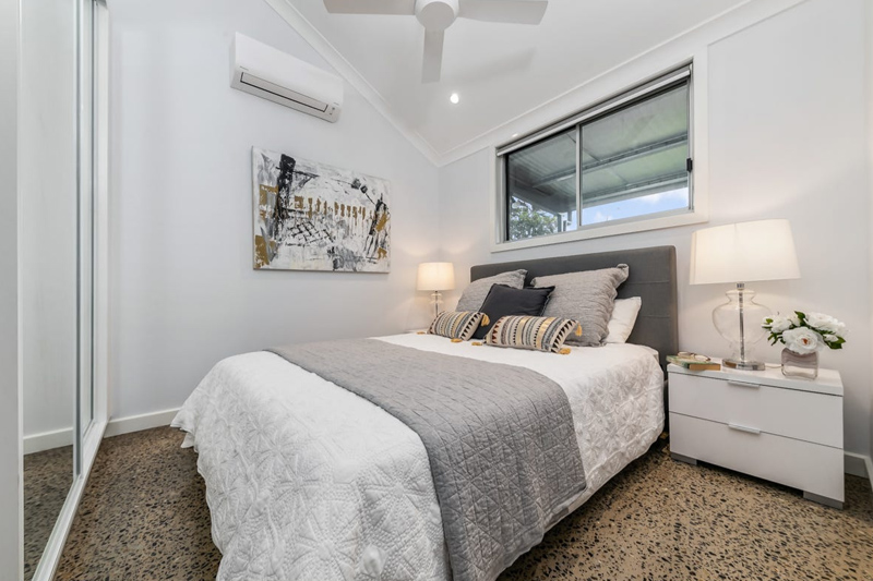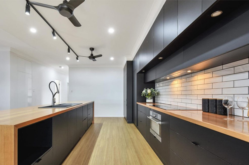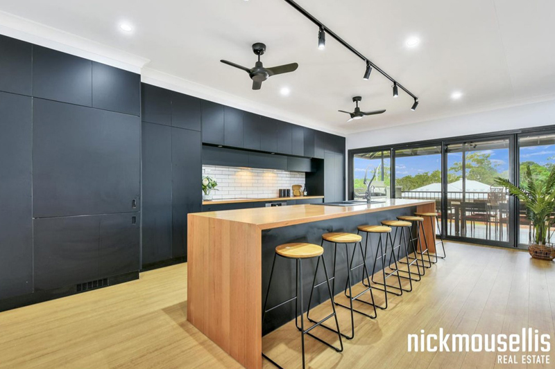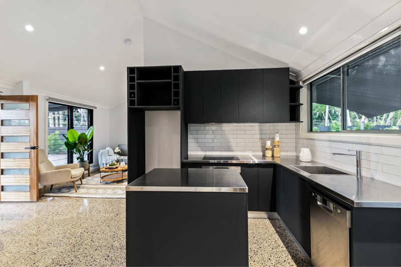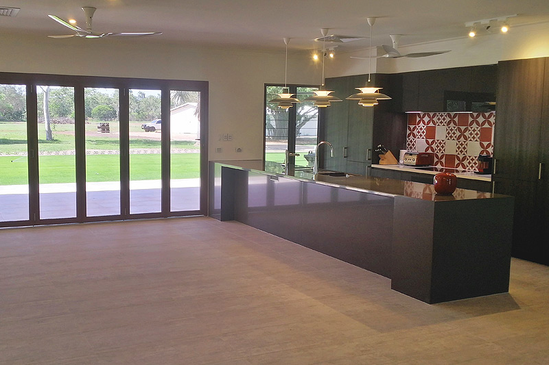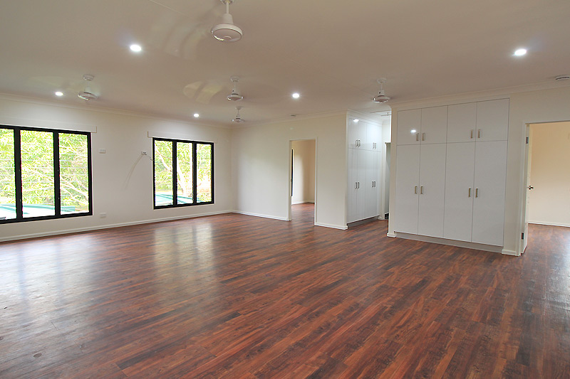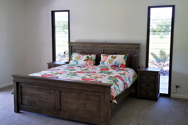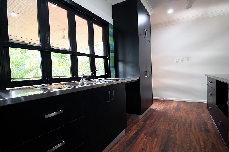 Master walk-in robe, Looselay flooring, Tiled wet areas, Separate toilet, Stainless steel kitchen benches, Outdoor servery