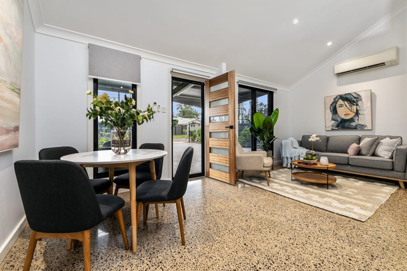Double garage, Master walk-in robe, Tiled wet areas, Separate toilet, Polished concrete floor throughout, Outdoor entertainment area